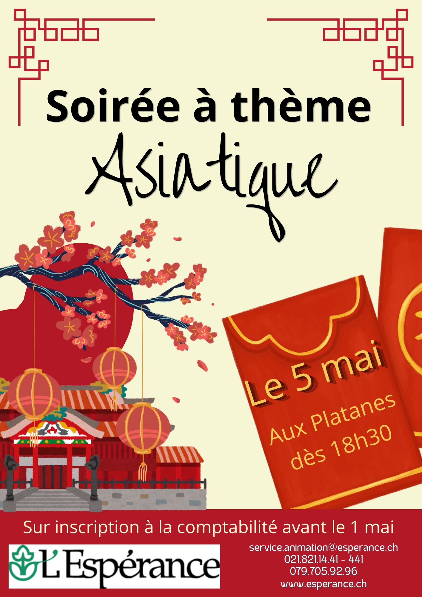 Le mardi 5 mai 2026 dès 18h30, le restaurant des Platanes fait voyager personnes accueillies, collaborateurs et visiteurs sur le thème de l'Asie, dans un décor prévu pour l'occasion.