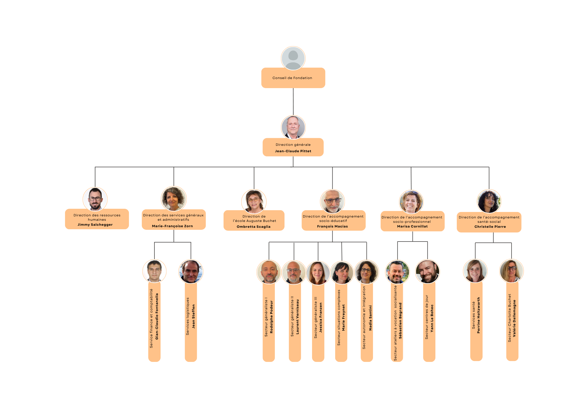 Le Conseil de Fondation, en tant qu'organe suprême, assure l'orientation stratégique de l'Institution. Le directeur général est garant du bon fonctionnement global. Dans ce sens, il favorise et instaure un esprit de concertation, de cohésion et de respect mutuel.